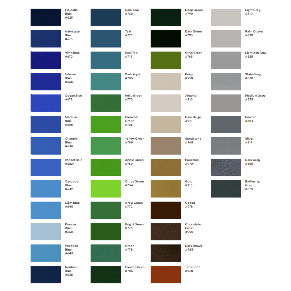 | Outdoor durability | Up to 6 years (vertical exposure; select colors may vary) |